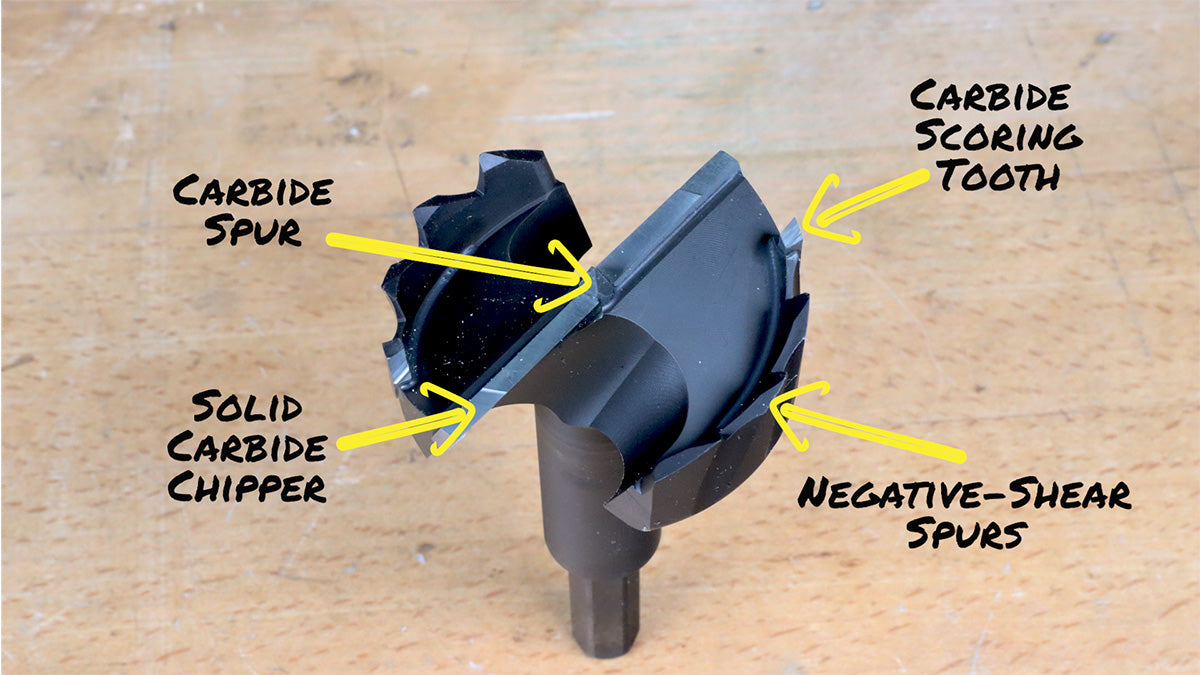 Most woodworkers are familiar with Forstner bits, specifically designed to create precise, clean, flat-bottomed holes, and much cleaner than a spade bit. How could they get any better? By adding carbide!