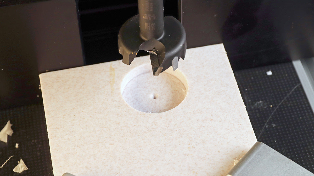 And these carbide forstner bits are just as efficient in particleboard, melamine and even solid surface materials.