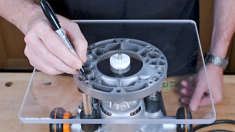 To get a perfect fit to your router, you want to center the new base plate exactly over the existing woodworking router base. There are a number of centering devices, but we use the optional Base Plate Alignment Kit. This kit includes a 1/4" centering rod, making it possible to add a custom base to even your trim router, if that's your choice.