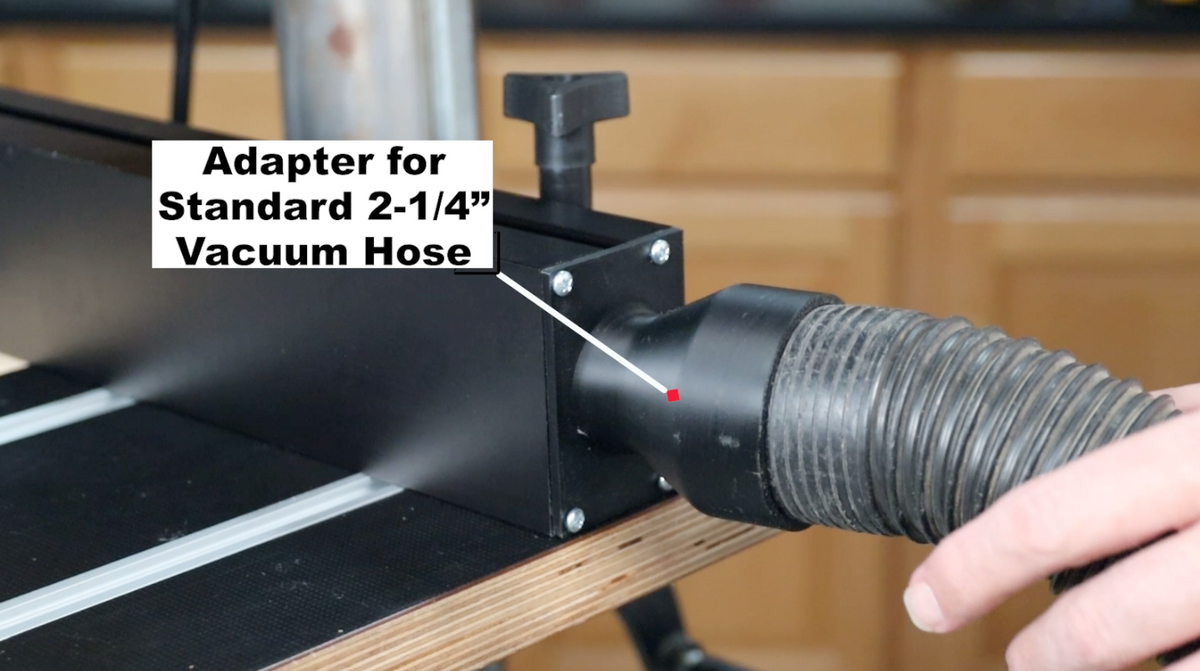 The fence is designed to connect to a variety of dust collection options through the included 2-1/4" connector, designed to fit most commercial vacuum hoses ...
