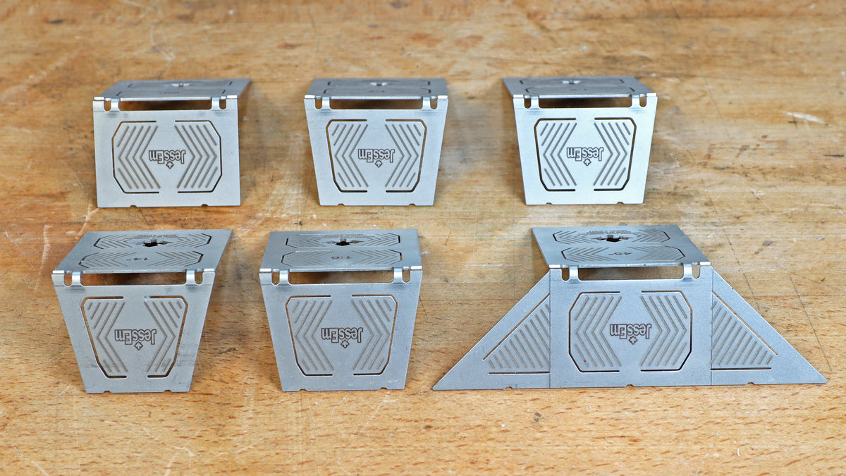 This JessEm set includes saddle squares for straight 90° cuts, 45° miters, as well as the four most common dovetail angles: the 1:6, 1:7, 1:8 and 14° sizes. Made of solid steel and precision laser cut, they’ll give you accuracy and repeatability for years to come. Plus, they include an anti-skid surface on the back, so they’ll stay put while you’re drawing your lines.